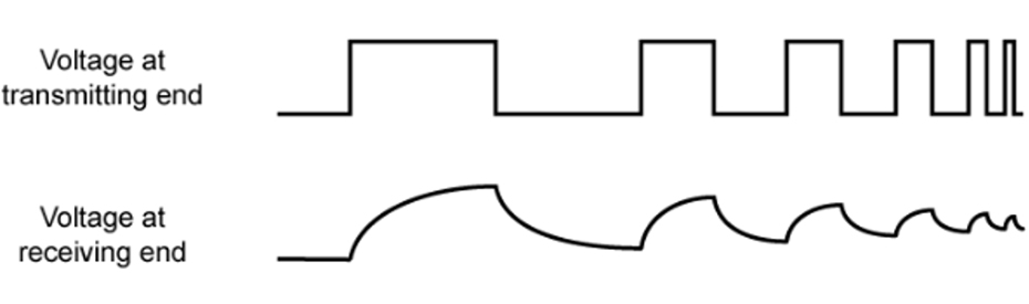 随着信号速度的继续增加,铜链路开始表现出几种弊端。 除了电路中简单电阻引起的衰减外,诸如近端和远端串扰、反射、倾斜和码间干扰等因素也开始降低信号强度。在发射机上产生的方波可能在接收机上显示为低电平起伏波。